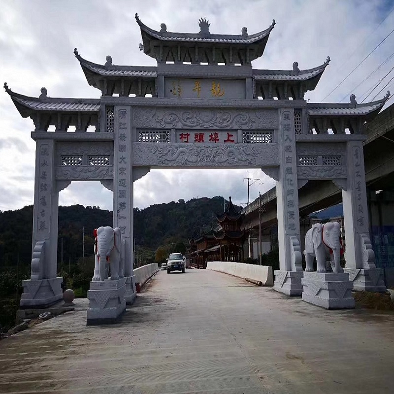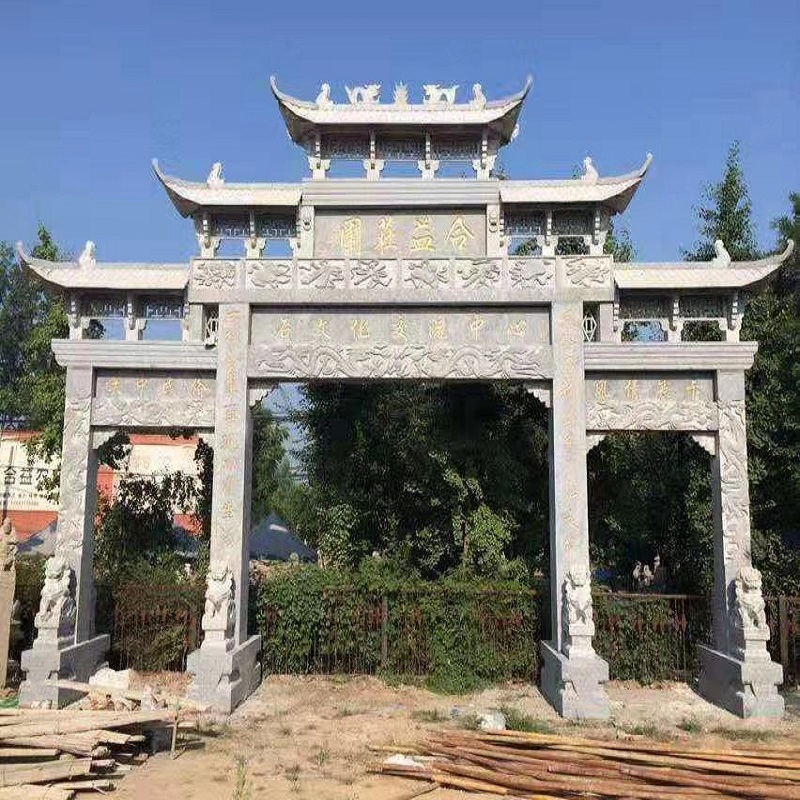 萬泰石材專業(yè)加工石牌坊,石雕牌坊,村牌樓,石牌樓選用優(yōu)質(zhì)石材,雕刻栩栩如生。